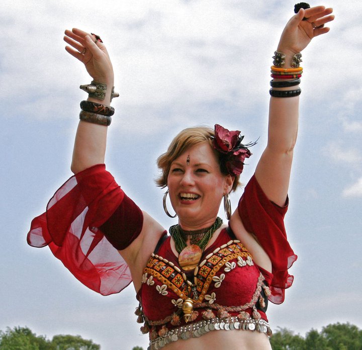 Each form of belly dance can be seen as a tribe – there are the cabaret dancers, with their lovely sparkly costumes and long flowing locks, swishing veils around with fluidity and seeming abandon. There are the ATS dancers, with their vocabulary of moves based on an improvisational style (which we incorporate in our version as well), who stand tall and proud in what they do. There are the gothic dancers, dark and mysterious, the innovators who are constantly changing their styles and incorporating new ones, inspiring us all. Each tribe works off from one another, supporting the same love of the dance and yet celebrating each tribe’s own uniqueness.