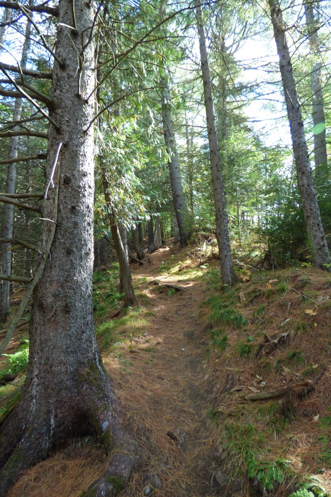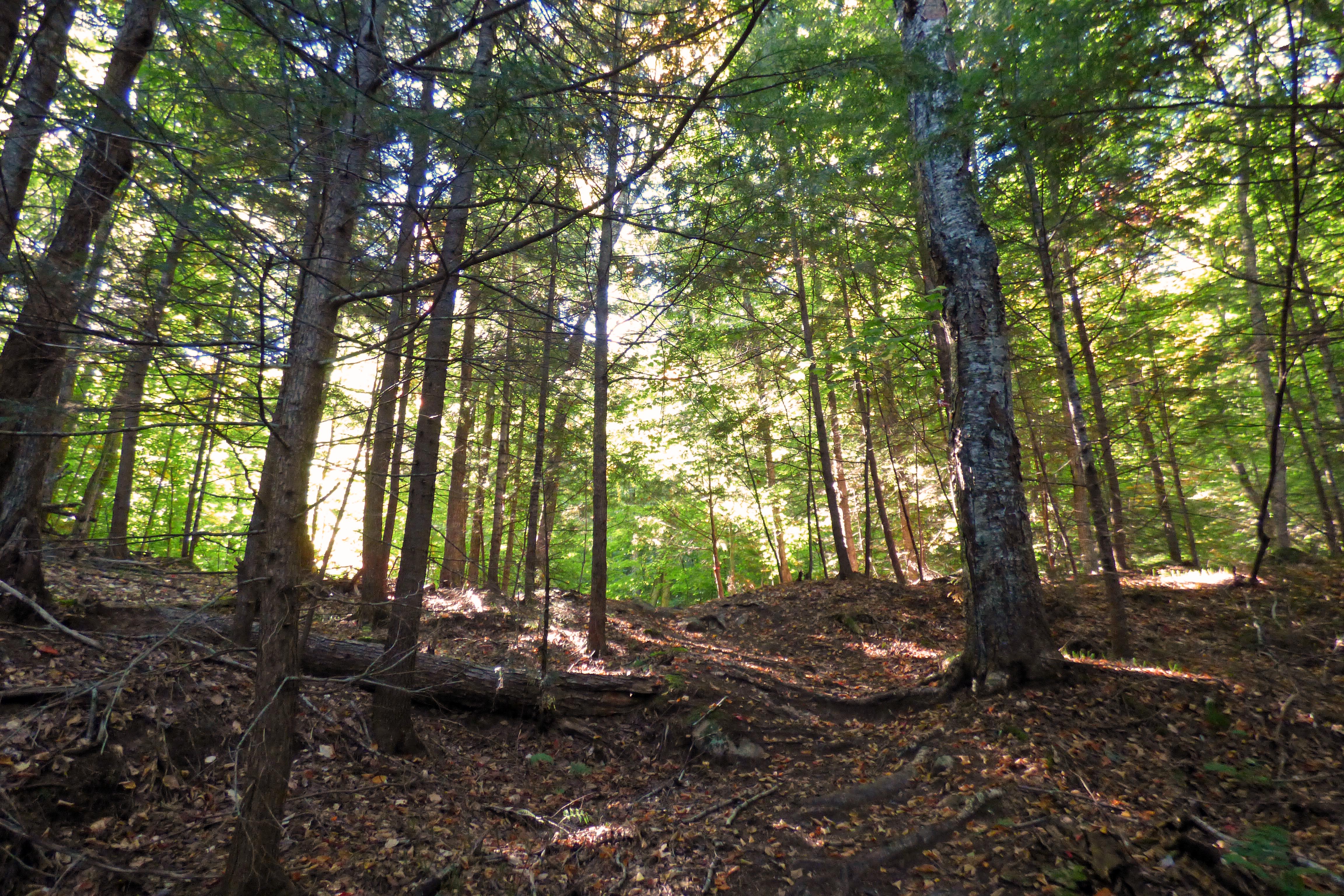 I walk along the ridge, the light shining through the pines and the birch trees with a soft, ethereal light. To either side of me the ground falls away sharply. This is a special place, a liminal place, which once only I and the horses knew. I walk up the hill along the ridge, and come out on top of the world. Well, my own little world from when I was growing up.